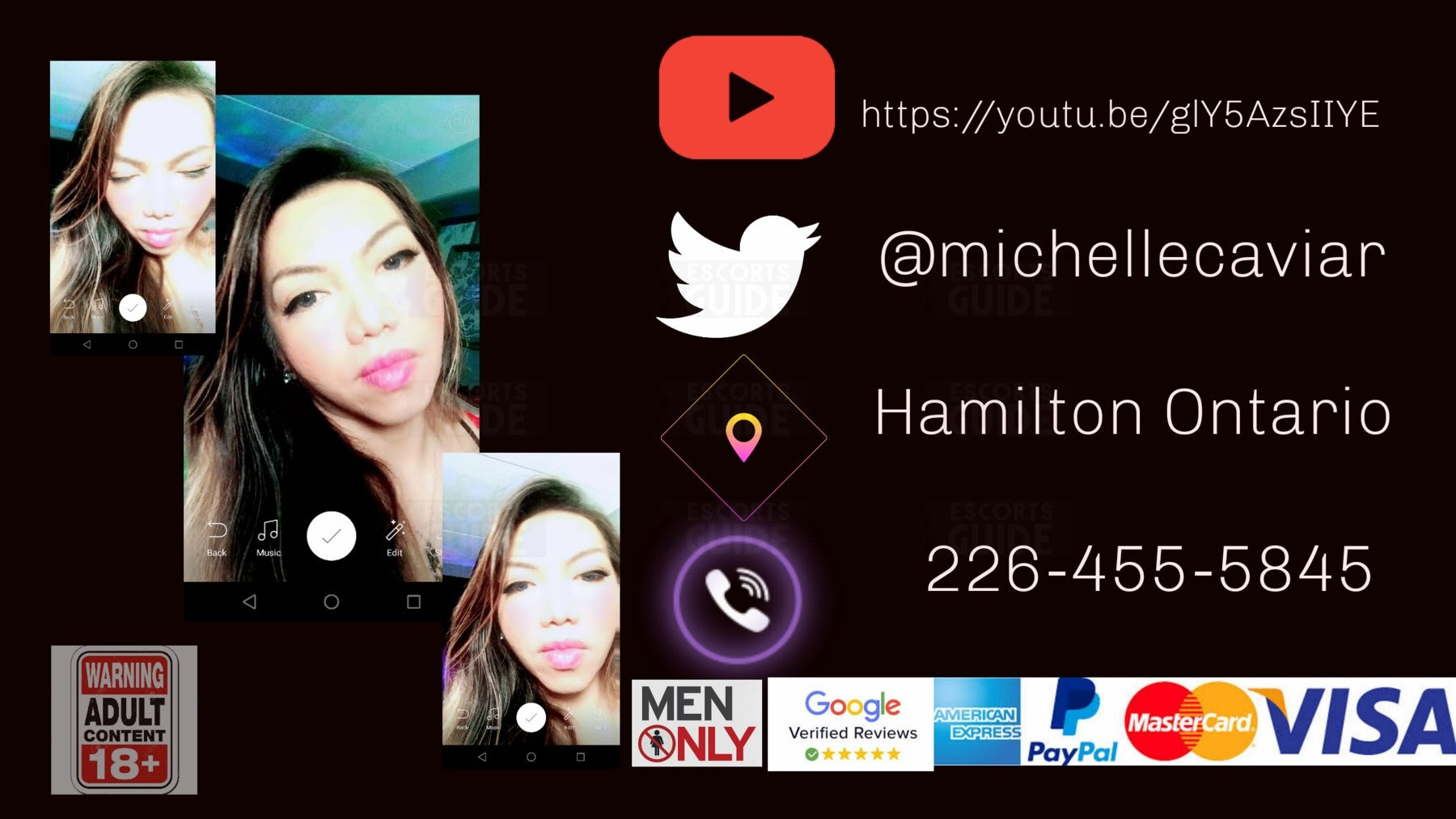28yrs old ASIAN BOMBSHELL ,sweet classy, talented gorgeous TS ,I got the looks n the skill to give u the best TS experience uve been looking for ... From MILD to WILD fantasy uve always wishing for ..Well designed with props n decor costumes ,relaxed and upscaled room for ur playful imaginations. The passion ,skills ,driven knowledged & great attitude making sure u will have a memorable encounter the memories you will keep after u step out my door. A Sexy bombshell passable hottie Sensual massage role play, Nuru massage domination,Dates,Submission,forcedplay, Hj,carfun,fetishes, Massages,kinks,Mutualplay ,carfun, *Toys ,costumes,extra services upon request* . $150-$300 session text /call now Ask for multihour rate specials ($200+) Location: Downtown,Hamilton, lol Services offered to : Hamilton Burlington, Ancaster, Mississauga,Toronto, Stoneycreek,Winnona,Grimsby ,Ancaster,Dundas,Oakville,Guelph, Niagara,St Catharines,Ontario